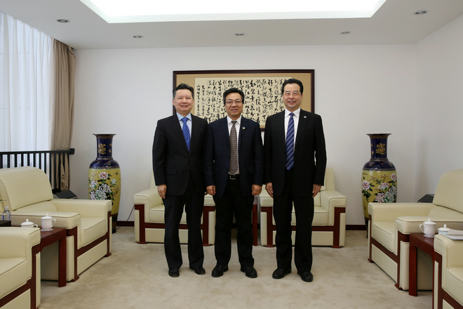 張曉松董事長(cháng)、周禮耀副總裁與中國鐵物馬正武董事長(cháng)合影留念